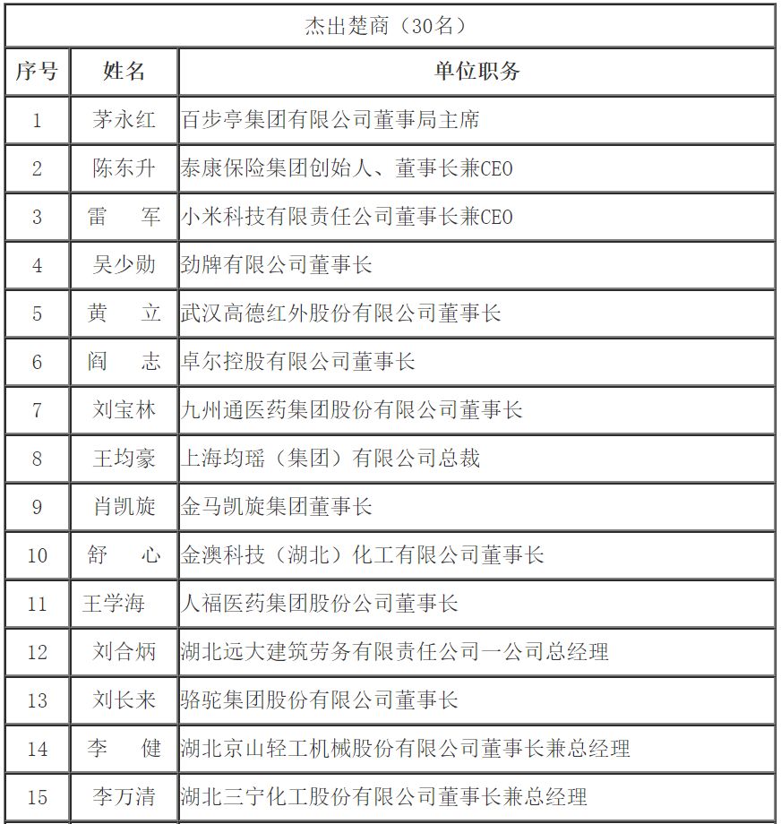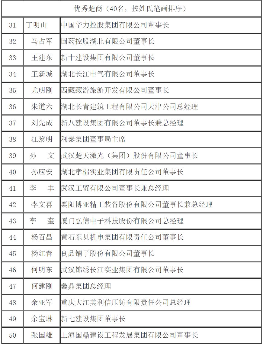 第四屆楚商大會擬宣傳推介優秀楚商人選名單