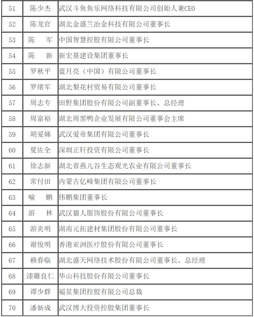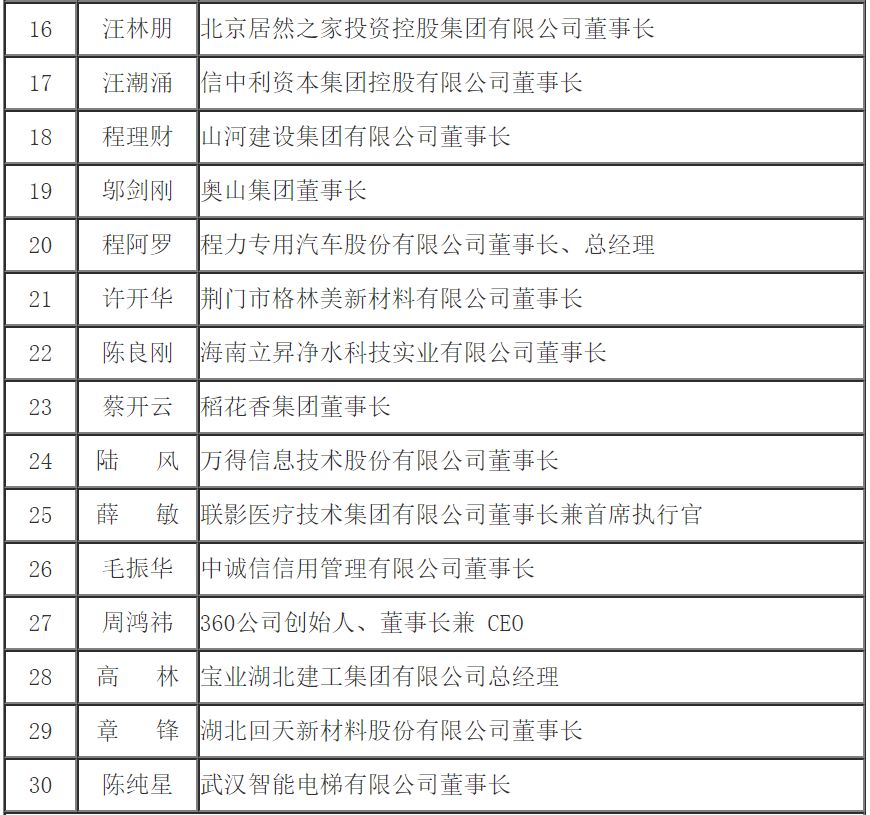 楚商大會70名優秀楚商名單湖北程力汽車集團程阿羅被授予十大杰出楚商