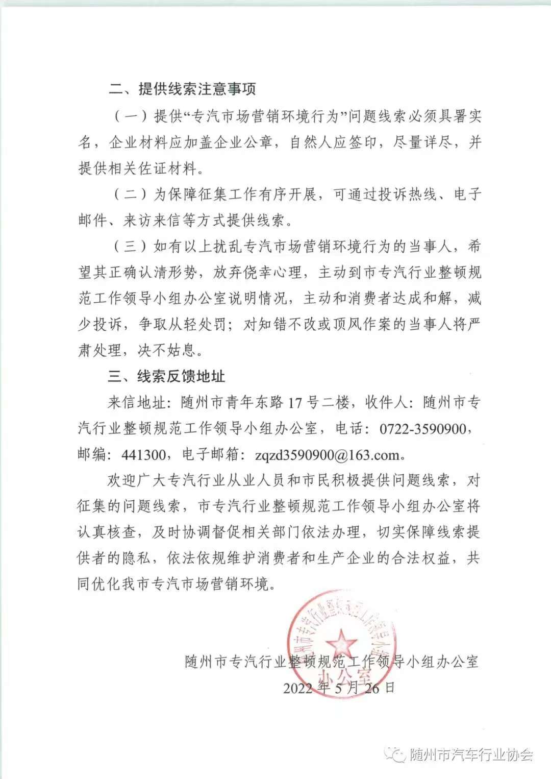 隨州市汽車行業(yè)協(xié)會(huì)關(guān)于整頓“隨州專汽市場(chǎng)營(yíng)銷環(huán)境行為”銷售欺詐投訴舉報(bào)公告