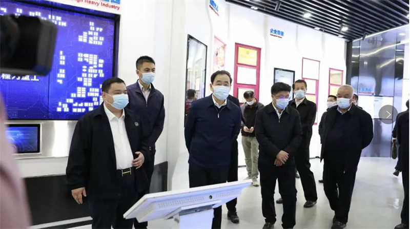 右上圖:湖北省副省長趙海山(左二)、隨州市政府副市長黃繼軍(左三)與程力汽車集團董事長程阿羅(左一)等負責人參觀程力專汽5G數(shù)字云展廳。 程力集團高質量發(fā)展的重大舉措引起了湖北省領導的高度重視,近日,趙海山副省長一行領導,在隨州市副市長黃繼軍、曾都區(qū)區(qū)委姜晧,以及隨州市、曾都區(qū)政府職能部門負責人的陪同下,赴程力汽車集團進行專題調研,他首先參觀了程力汽車集團5G數(shù)字云展廳,對程力集團跨越式發(fā)展與對地方經(jīng)濟建設的貢獻,表示了充分肯定;鼓勵企業(yè)以新技術、新材料、新工藝為重要抓手,以研發(fā)生產(chǎn)氫燃料動力整車和新能源商用車暨應急裝備產(chǎn)品轉型升級為突破口,一心一意謀發(fā)展,堅定不移地走科技創(chuàng)新和綠色環(huán)保可持續(xù)發(fā)展之路。