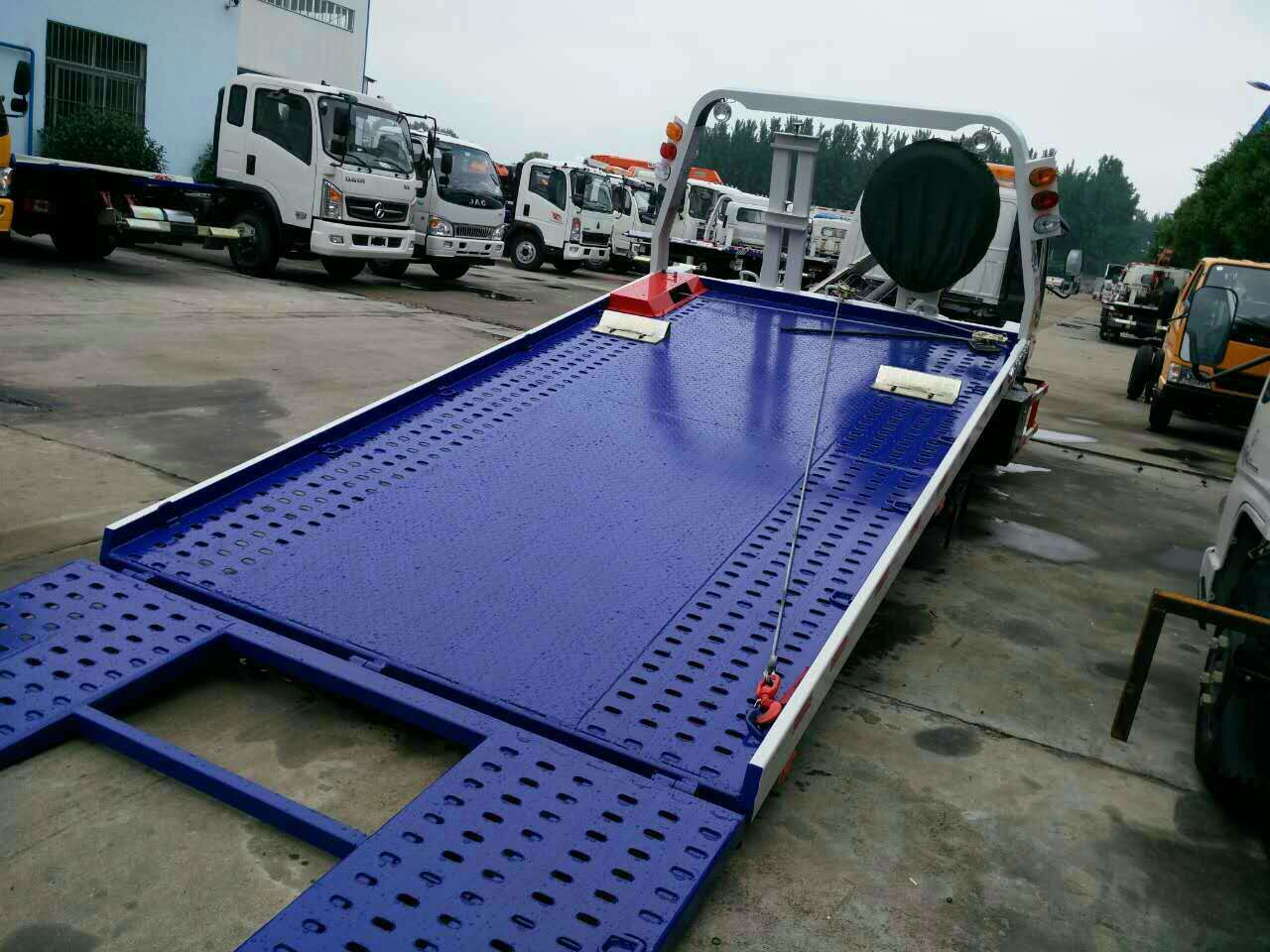 上裝標配花紋板和壓制板兩種。隨車配綁帶4根,L型托叉壹對,4T卷揚,20m的鋼絲繩。警燈一套,底盤合格證,保修手冊,整車合格證,整車票,整車說明書,及隨車工具一套,顏色可選。