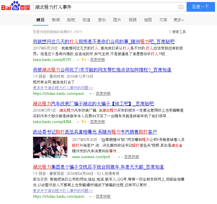 2018年1月29日,湖北程力汽車集團(tuán)股份有限公司對2017年6月20日,關(guān)于對余朝陽打人事件(視頻)的調(diào)查處理做出了通報(bào)。  ![]() 我們來看看,相關(guān)事件目前在網(wǎng)上流傳的視頻截圖  ![]() 再看看,關(guān)于事件被某搜索引擎收錄的條數(shù)  ![]() 遇到糾紛,請雙方多協(xié)調(diào)解決且勿動手,同時希望此事件平息下去!請勿造謠并傳播。共建中國專汽之都—隨州榮譽(yù)稱號 |