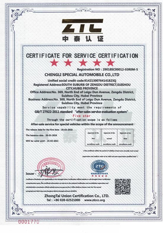 湖北程力公司獲得國家標(biāo)準(zhǔn)售后服務(wù)五星級認(rèn)證