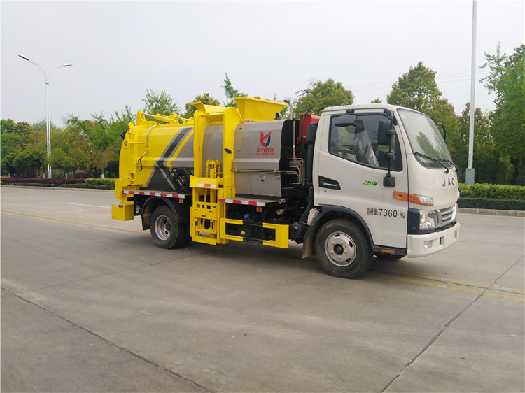 湖北程力國六江淮駿鈴5方餐廚垃圾車(方罐)程力威牌CLW5081TCAH6型餐廚垃圾車 廠家配置: 湖北程力國六江淮駿鈴6方餐廚垃圾車(方罐)底盤配置:江淮駿鈴V6駕駛室2071寬體,3365軸距,云內(nèi)德威163馬力D30TCIF2(120KW),六齒六檔變速箱,動轉(zhuǎn),中控鎖,電動玻璃,多功能方向盤,日間行車燈,空調(diào),斷氣剎,前橋3噸,后橋7.2噸,750R16LT 14PR鋼絲胎。 湖北程力國六江淮駿鈴6方餐廚垃圾車(方罐)改裝標(biāo)配:(1)弧形箱體,箱體材質(zhì)為4mm。(2)合肥皖液油泵,江蘇多路閥,國產(chǎn)液壓油缸。(3)推鏟卸料(不帶舉升功能),具有干濕分離功能。液壓后蓋,后蓋帶密封條。(4)后門液壓鎖緊。(5)拉桿式提升機,掛240L標(biāo)準(zhǔn)塑料垃圾桶。進料口蓋液壓開關(guān)。(6)駕駛室內(nèi)集中電控(提升機外部手動控制),后門鎖緊與后蓋開關(guān)的操作具有防誤操作。(7)箱體帶清洗裝置(液壓馬達帶動高壓泵、帶水箱) 湖北程力國六江淮駿鈴5方餐廚垃圾車(方罐)程力威牌CLW5081TCAH6型餐廚垃圾車圖片價格: