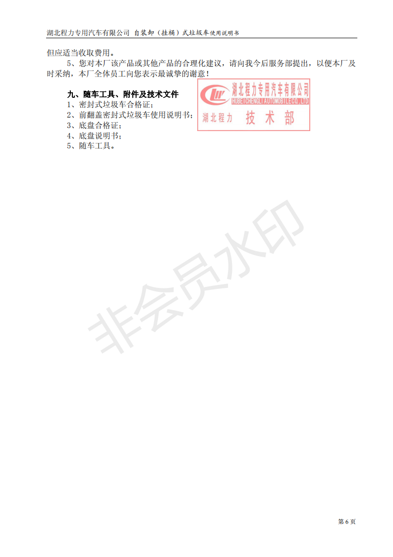 湖北程力自裝卸式垃圾車(掛桶式垃圾車)使用說明書