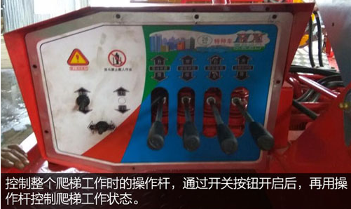 控制整個爬梯工作時的操作桿,通過開關按鈕開啟后,再用操作桿控制爬梯工作狀態(tài)。