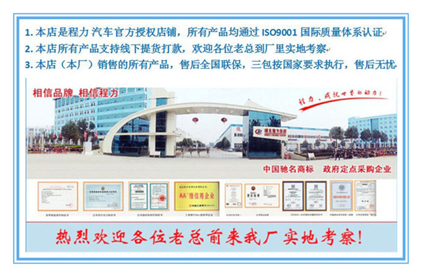 廂體結構:采用聚酯濕法制板工藝和玻璃纖維加強不銹鋼立柱框架結構,使用國際上最為先 進的第五代全封閉聚氨酯板塊粘接法。 廂板材質:內外壁板選用國內優質的機制2.2mm玻璃鋼;中間保溫材料選用厚進口聚氨酯; 廂體厚度80mm 門厚度80mm;底板上面整體鋁花紋板,下面彩鋼板,中間進口聚氨酯; 配件:廂體周邊2.5mm鋁合金包邊,不銹鋼包角,不銹鋼門鎖,防碰膠皮4塊,不銹鋼門框, 不銹鋼合頁,箱內節能照明燈。 制冷機組:冷藏機組知名的國產品牌凱利,漢雪或華泰頂置式機組,廂體溫度0上5度至0下18度(可選配進口機組韓國韓亞,美國開利冷王等)。 駕駛室可視---車廂溫度監視儀、溫度控制器以及溫度打印機等。(根據客戶需求可選裝) 整車出具:正規底盤合格證,正規整車合格證,正規車輛購置稅發票,全國統一機動車,隨車工具,車輛質保手冊,車輛使用說明書,全國服務站名錄等。讓您上戶無憂,方便快捷! 冷藏車廂體制作技術: 1、分片拼裝的“三明治”板粘接式,目前國內較大的冷藏車生產企業都采用這種技術,利用這種技術生產的冷藏車隔熱性能較高。 2、分片拼裝的注入發泡式。 3、整體骨架注入發泡式。 4、真空吸附式粘貼冷藏機組分類:冷藏機組分為非獨立制冷機組和獨立制冷機組。國產機組與進口機組等。一般車型都采用外置式冷機,少數微型冷藏車采用內置式冷機。對于溫度要求較低的冷藏車,可采取廂體內置冷板(功能相當于蒸發器) 要想廂體的保溫效果好,自然是隔熱層材料的選擇了。 售后及維護說明: (2)建立定期回訪制度。每年夏季、冬季公司售后服務人員開展“夏季送綠蔭”和“冬季送溫暖”活動,保證售出車輛的維修的保養。 (3)冷藏/保溫廂體保修一年(行駛里程不超過25000公里)。在保修期內,由于材料、制造、裝配方面所造成的損壞,由本公司負責更換與修理。 (4)保修范圍內不包括正常磨損,對于不按照說明書使用以及交通事故,人為破壞,本公司不予保修。到本公司修理,由用戶承擔修理費用。 (5)開通24小時服務熱線,對用戶提出的維修要求實行4小時內答復,24小時到達現場服務。(邊遠地區72小時到達現場服務) (6)超過保修期的廂體,需更換配件或維修,我公司均能滿足配件供應和及時的服務,無償派技術人員進行維修,只收取原材料成本費。 備注:產品信息、圖片、參數等,僅供用戶選購參考,對冷藏車有特殊要求的請提前告知! 我們的授權和榮譽![]() 我們的冷藏車給您的貨物一個清涼的世界 ![]() 我們的細節展示 ![]() ![]() 訂購程力專汽,只需輕松5步確定需求銷售經理隨后會對您進行電話訪問咨詢,了解您的購車需求,并根據您的實際情況推薦適合您的方案和產品,并發電子版產品資料配置,方便您進行參考和定奪。 簽訂合同一旦您確定購車方案,雙方會簽訂訂購合同。 廠家生產交付定金后,我們數萬名員工將開始為您制造高品質的產品。 滿意交付您可以選擇到廠家自提汽車,或者選擇送車服務。如果您選擇廠家自提,您可以享受我們星級的售中服務。 |