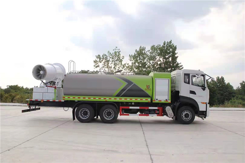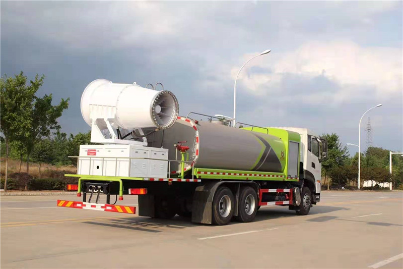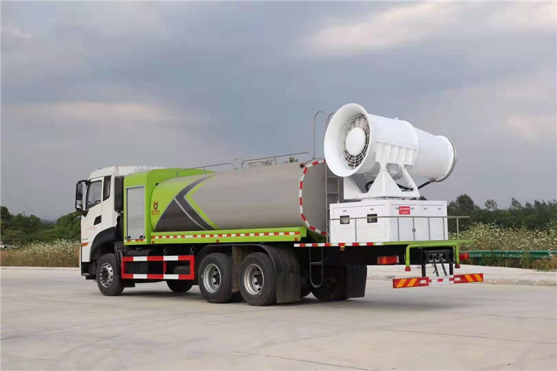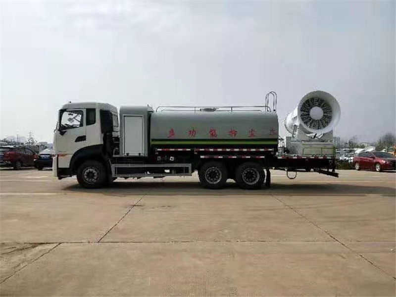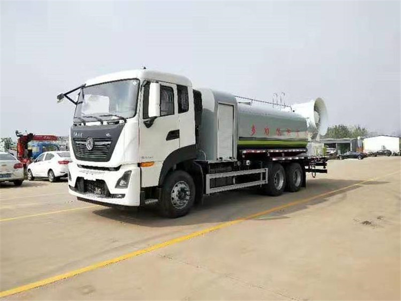程力專用汽車股份有限公司國六東風天龍后雙橋多功能抑塵車,采用東風天龍后雙橋底盤,配國六康明斯290/300/350馬力發動機,4350+1350mm軸距,11.00R20鋼絲輪胎,陜齒9檔變速箱,7噸前橋,10噸后橋,助力轉向,電動玻璃,斷氣剎,原廠空調,氣囊座椅,ABS,定速巡航,行車記錄儀等。罐體容積16噸,罐體采用外防銹內防腐處理,武鋼5mm優質碳鋼板制成。進水方式可自抽,消防接口,罐頂自流三種方式,標配前沖后灑,側噴花灑,罐體后工作平臺,平臺上安裝灑水炮和車載噴霧炮,雙炮均可全方位旋轉,霧化效果可調節,可選配60--120米噴霧機。